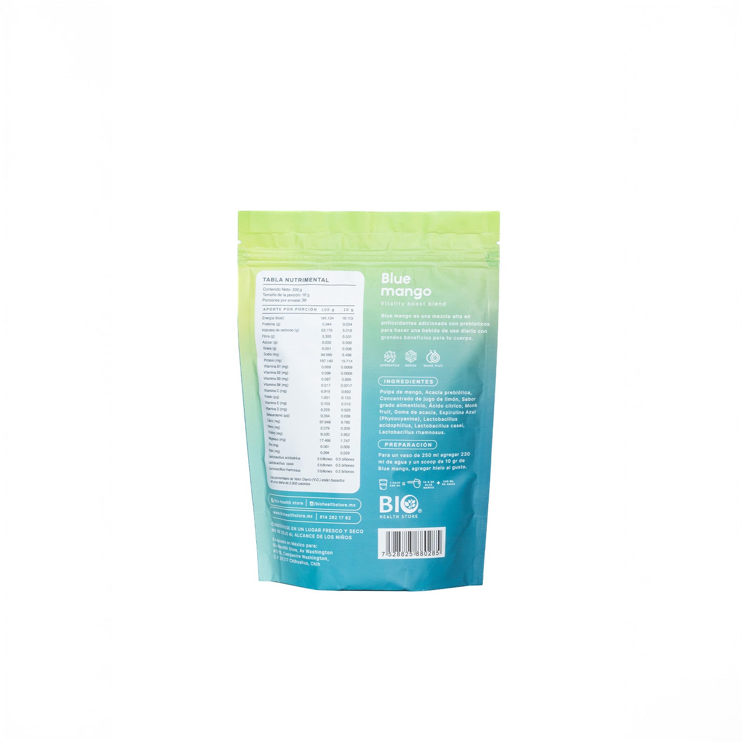 Este polvo de mango y alga azul es perfecto para cualquiera que busque beneficios antioxidantes al tomar una bebida refrescante. Con prebioticos y propiedades funcionales, ¡es una bebida imprescindible para mantenerse saludable y refrescarse!