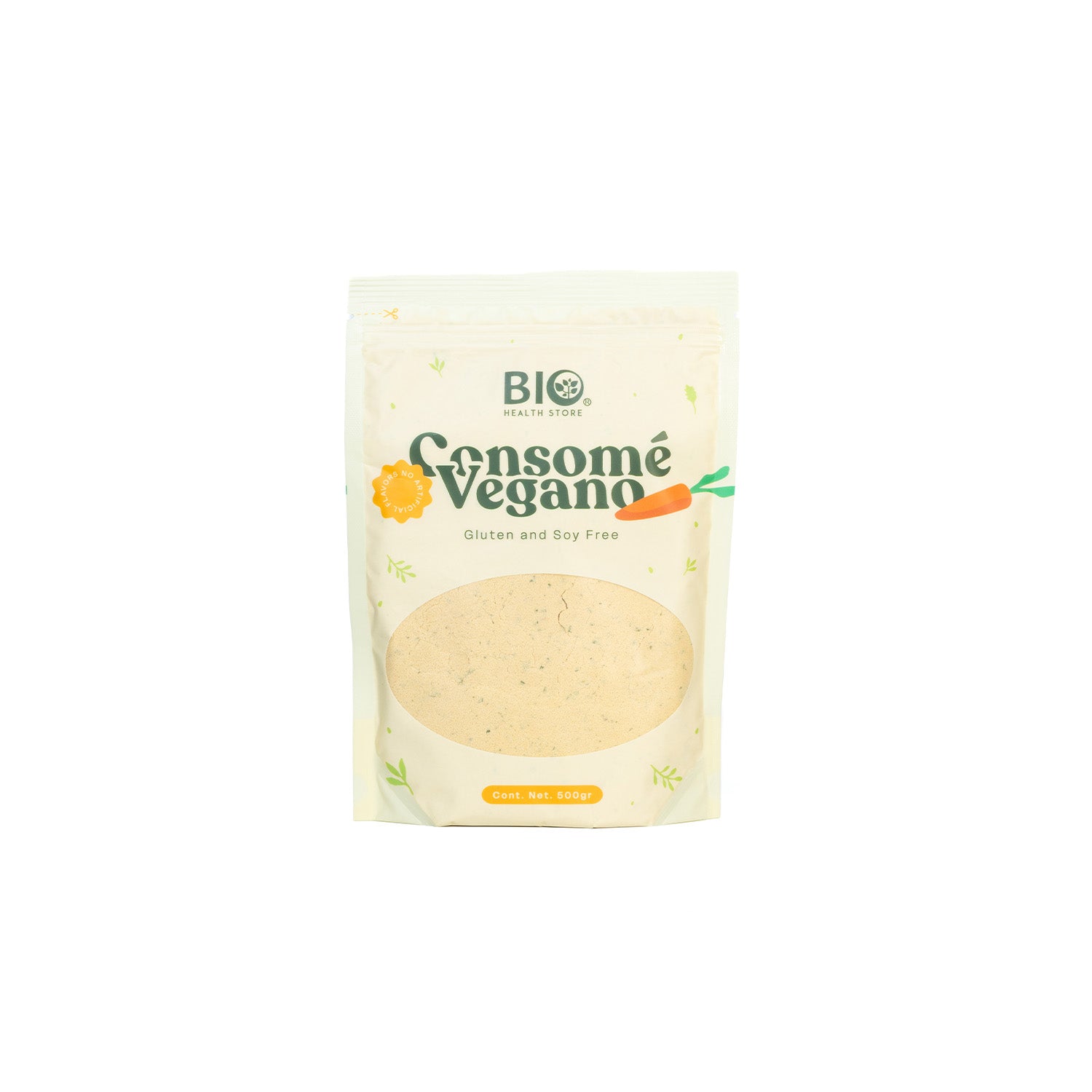 Disfruta una comida nutritiva con nuestro Consome Vegano 500 gr. Contiene verduras y además es libre de glutamato monosódico, para garantizar un sabor natural y auténtico sin aditivos artificiales. ¡Dale a tu plato un toque saludable con este irresistble polvo para consome!