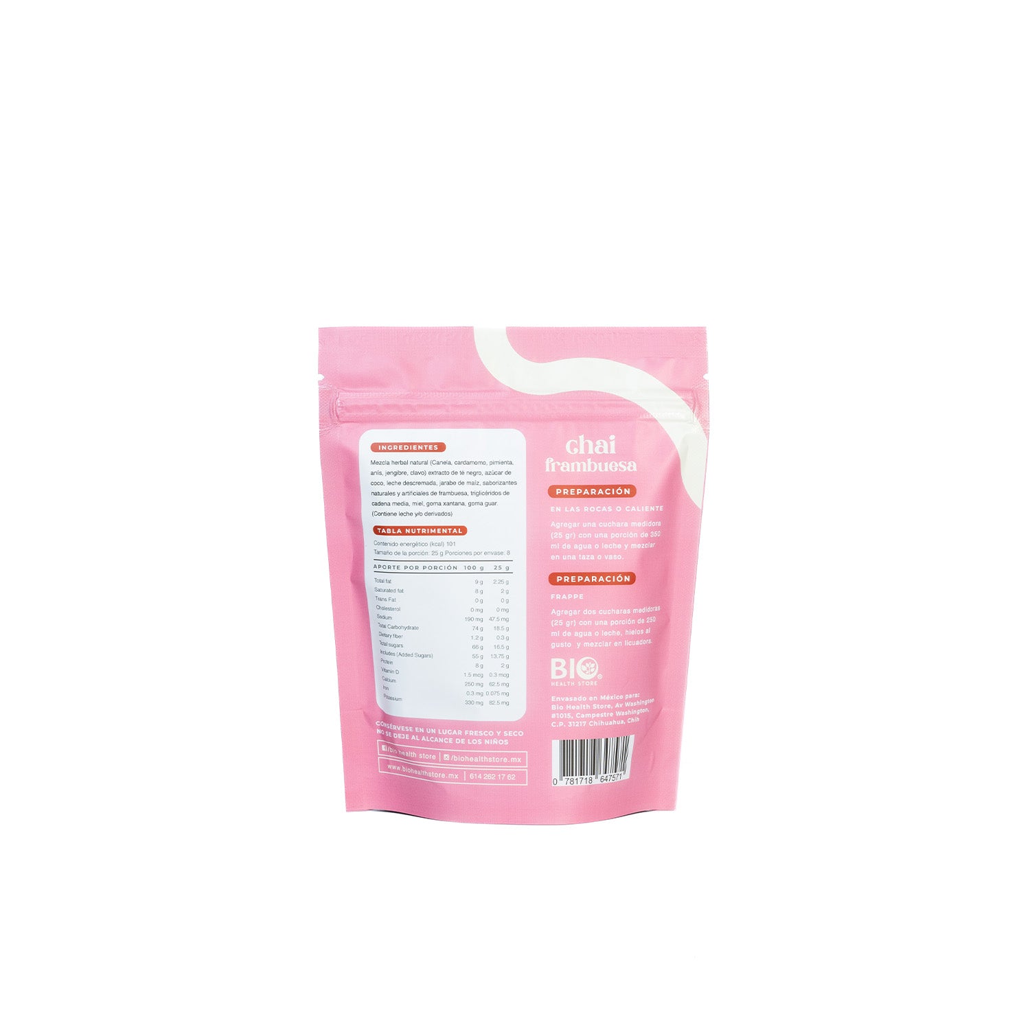 Disfruta el sabor increíble de esta bebida refrescante y única. Té Chai Frambuesa es el resultado del delicioso sabor de la frambuesa mezclado con el aroma y la suavidad del té chai. Una bebida suave y sabrosa para todas las edades.